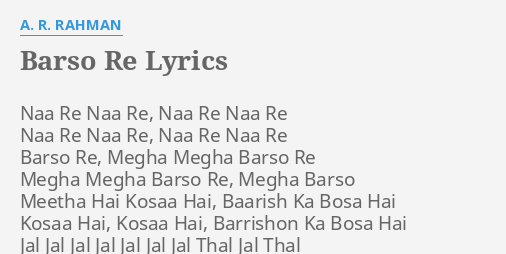 Barso Re Lyrics By A R Rahman Naa Re Naa Re